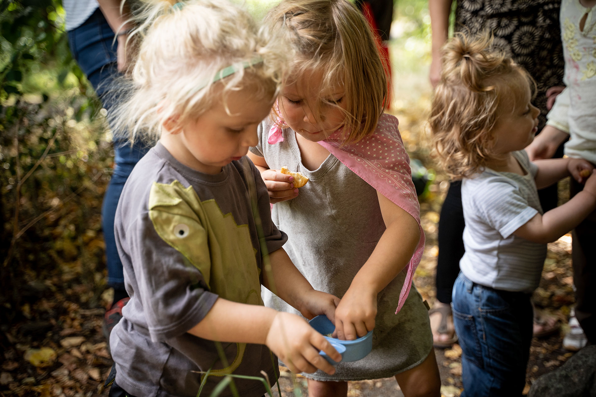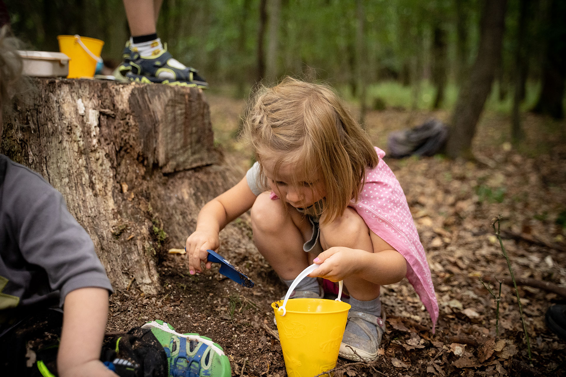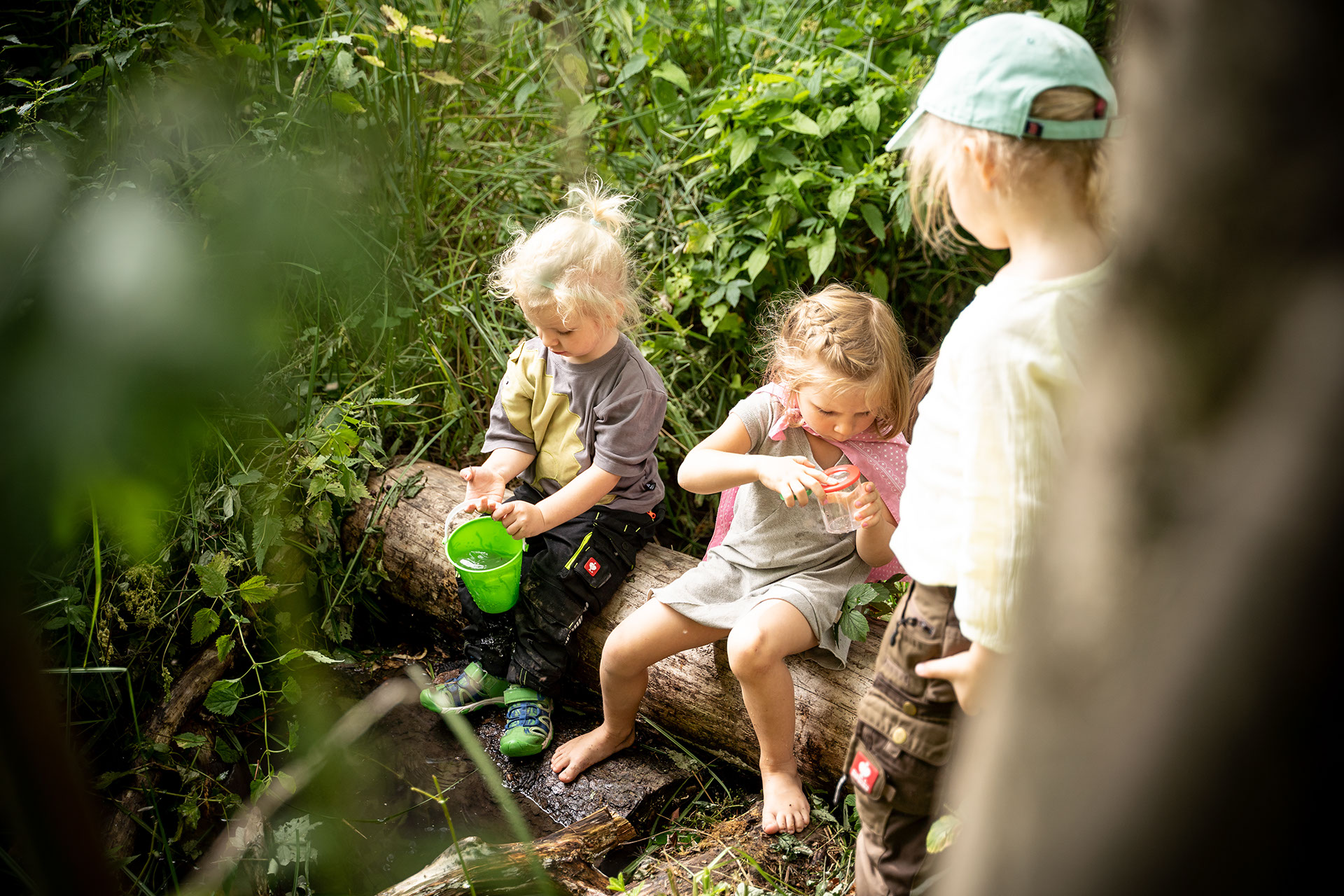 Die Eichhörnchen sind in einem spannenden Alter, in dem der Aufenthalt im Wald ganz bewusst zu einer ganzheitlichen Entwicklung positiv beiträgt. Die Waldspielgruppe hat einen Rahmen mit Ritualen wie Begrüßung, bewusstes Wahrnehmen, Lauschen, gemeinsames Frühstück, ein Tagesthema sowie einen Abschlusskreis. Gemeinsame Lieder und Fingerspiele begleiten die Zeit im Wald. Durch meinen wald- und naturpädagogischen Ansatz vermittele ich den Kindern spielerisch und kreativ die Gesetzmäßigkeiten der Natur, den Wandel der Jahreszeiten, das Verhalten der Tiere, die Veränderung des Klimas. Dabei spielen auch Mythen wie Wichtel und Elfen eine Rolle. Sie bringen Kindern die Vorgänge der Natur näher, fördern Kreativität und Fantasie und lassen sie vom straffen Tagesablauf entspannen. Die Eichhörnchen forschen, basteln, malen, klettern, toben, entspannen in der Hängematte oder am Lieblingsbaum.