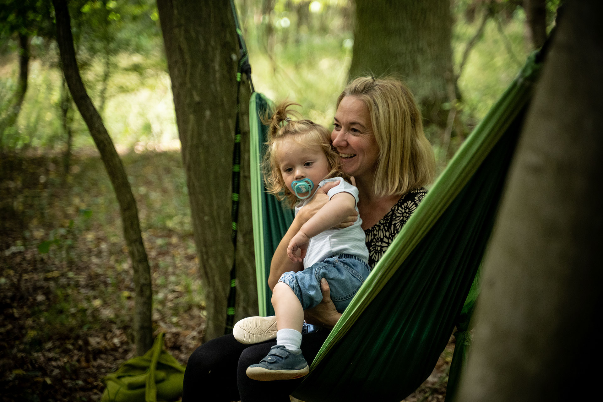 Mama mit Kind in Hängematte